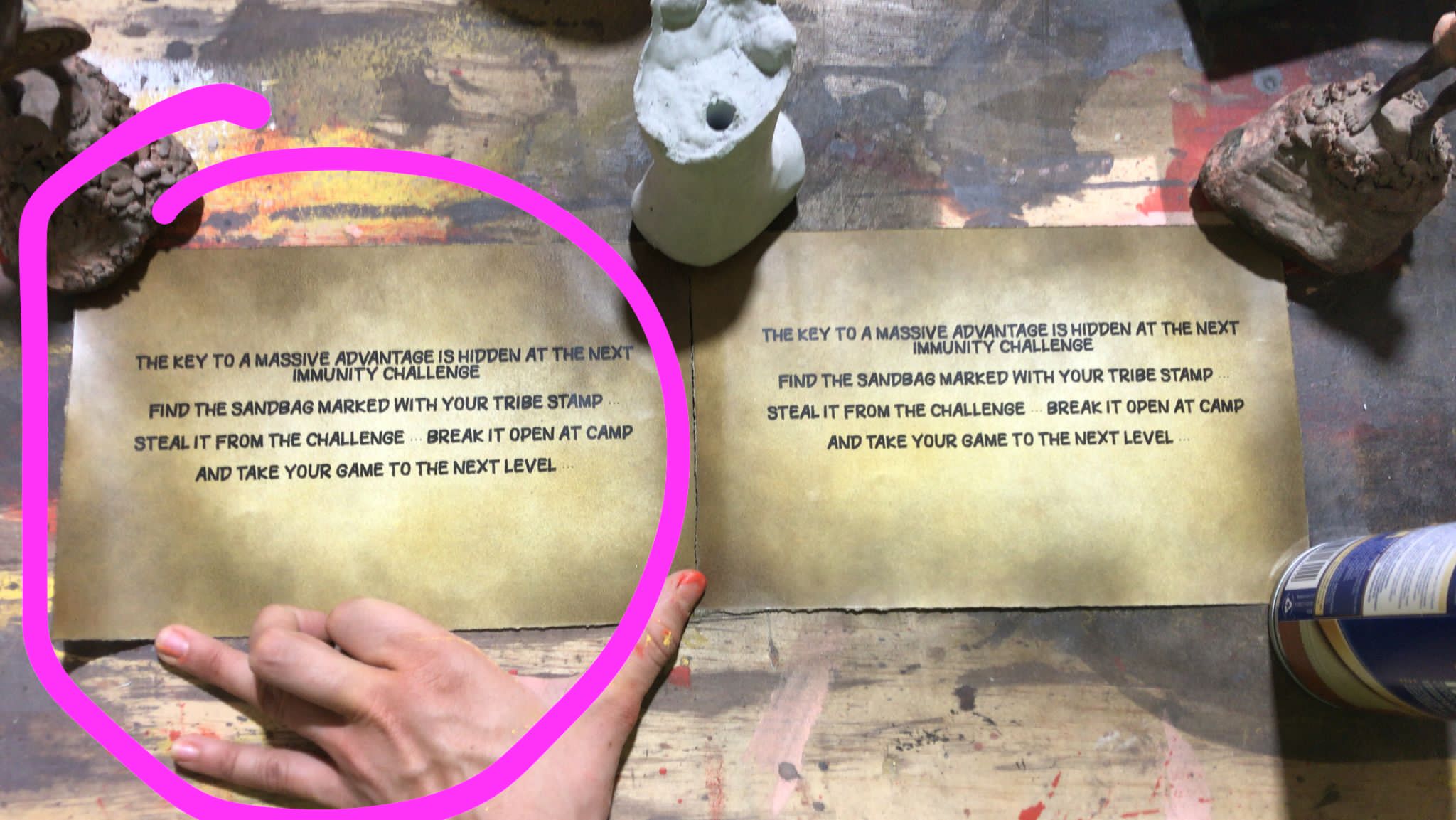 I would particularly like to acknowledge the work of Chad Atkinson from Stingray Sushi Studios who provided the torches, snuffer, urn, hidden idols, pen and the immunity idol.